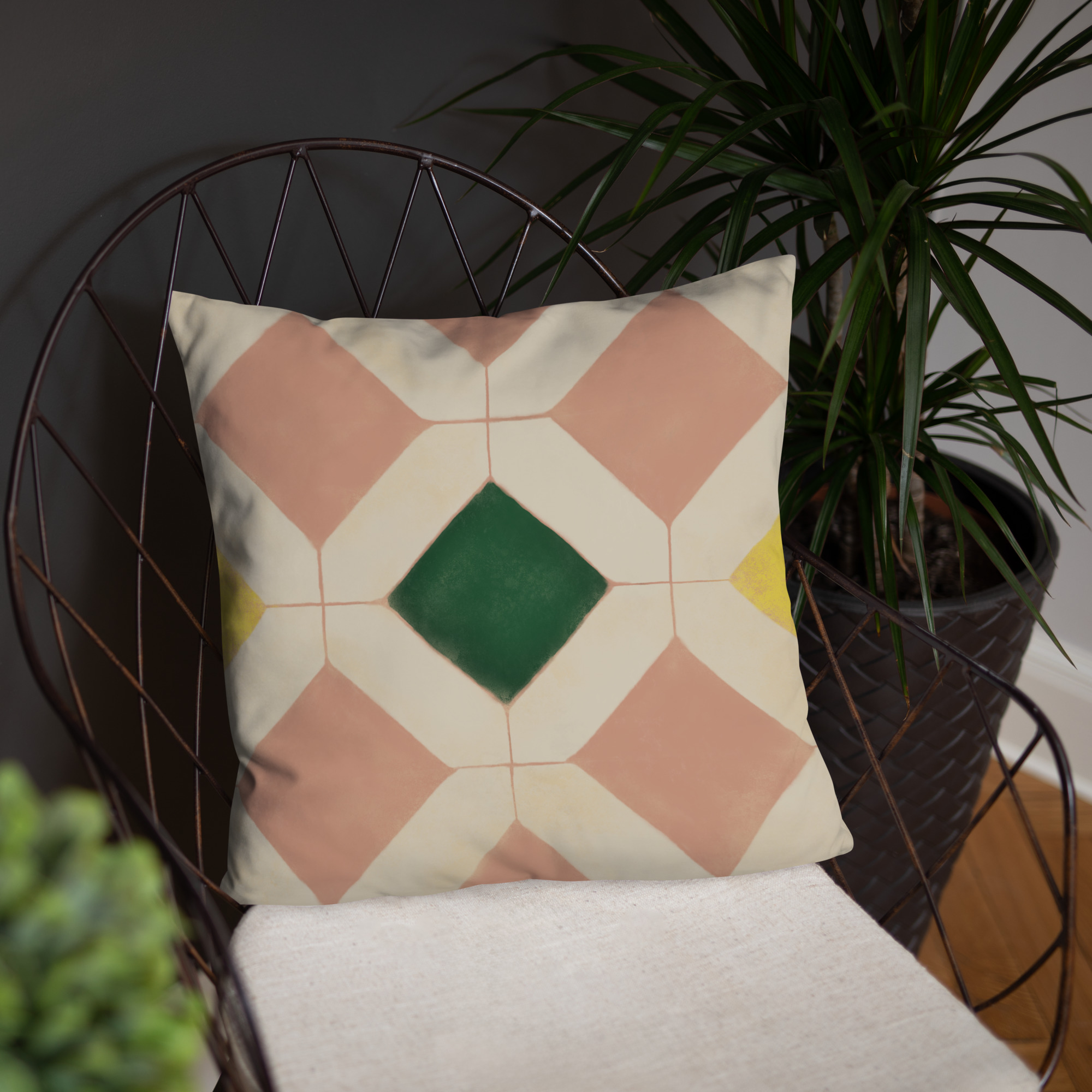 Throw Pillow // Aged Hexagon and Diamond Tile // Sandstone Yellow Green