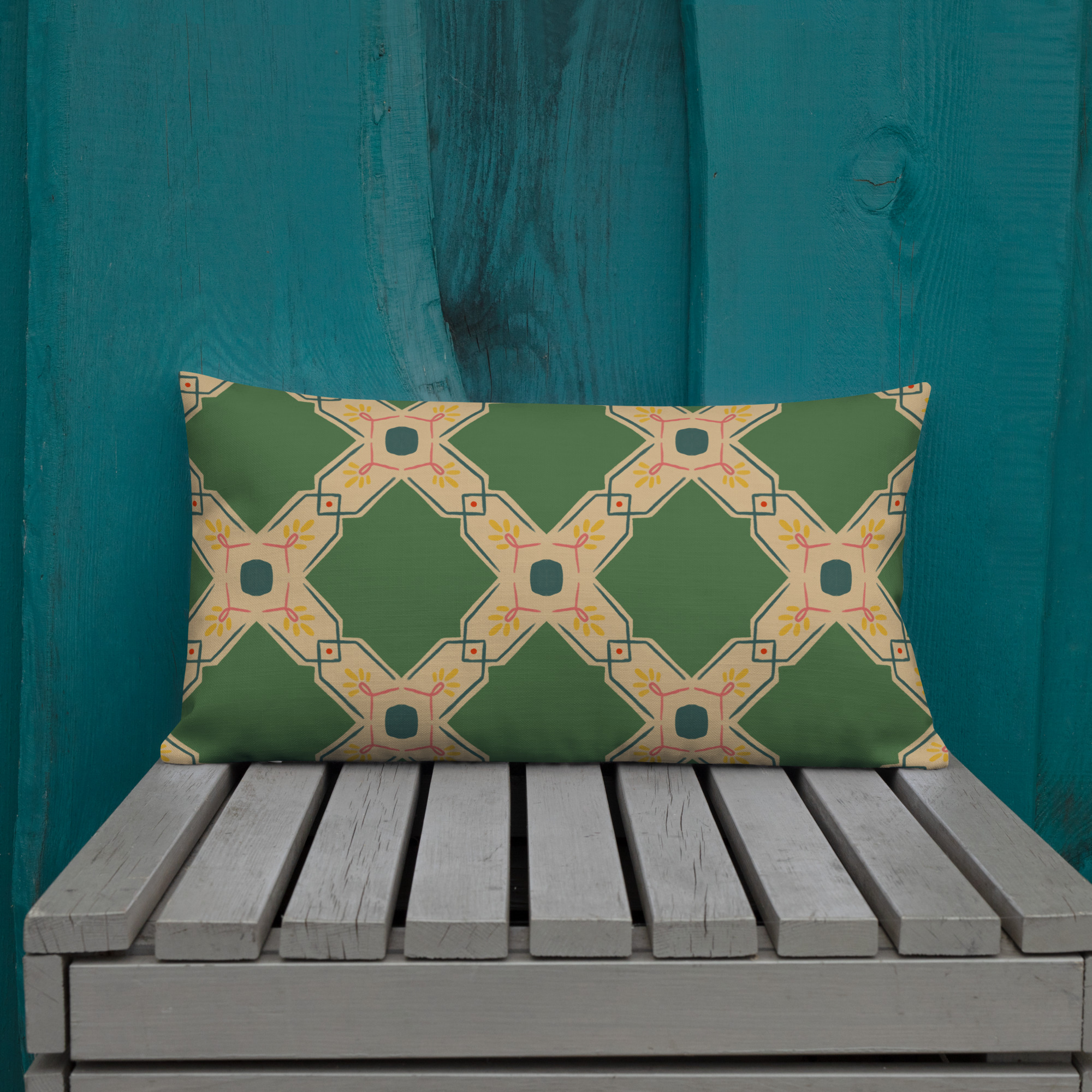 Throw Pillow // Star of Venus Palace Tile ( Sage Ochre Bleu )