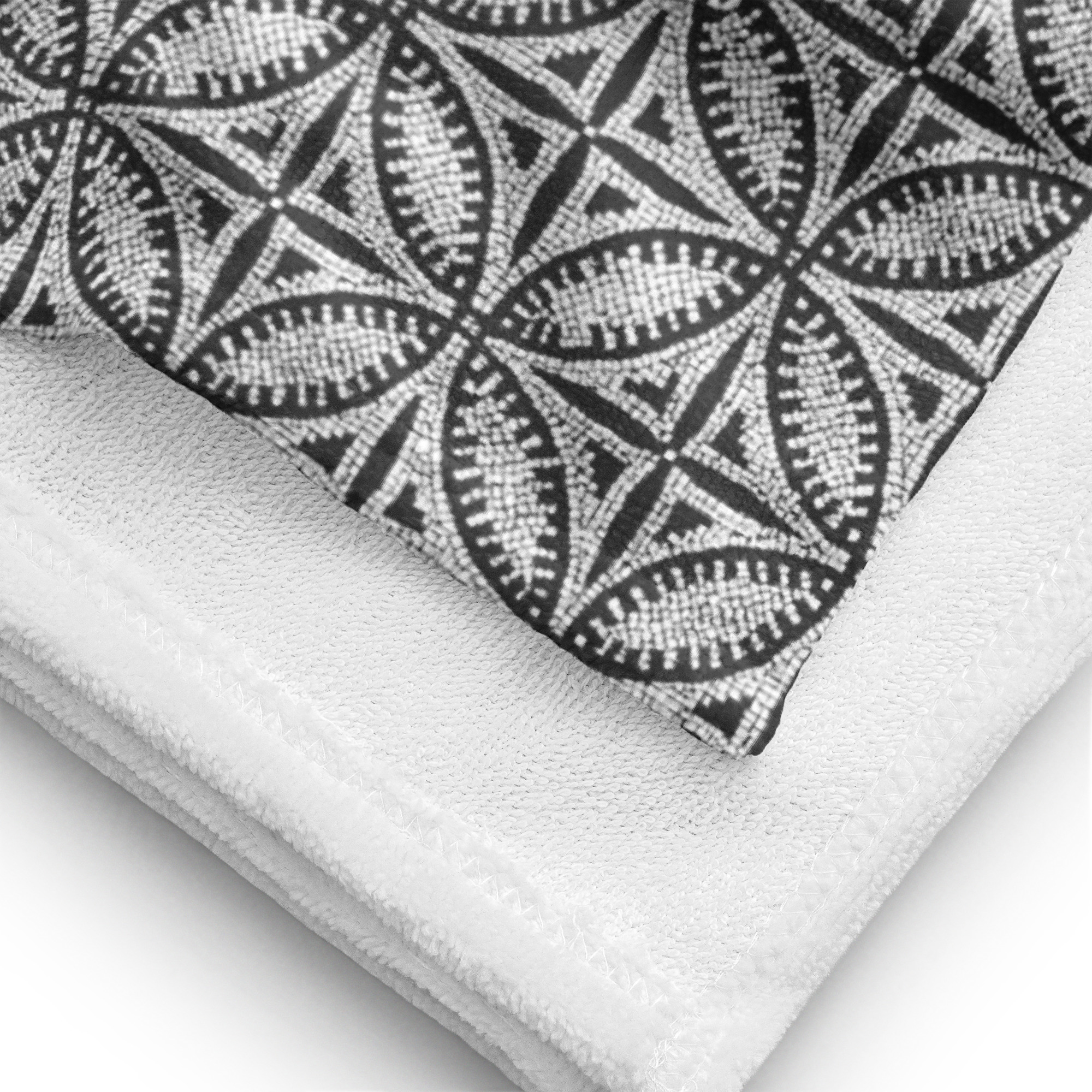 Beach and Bath Towel // Kerkennah Island Mosaic // White Tiles Charcoal Background