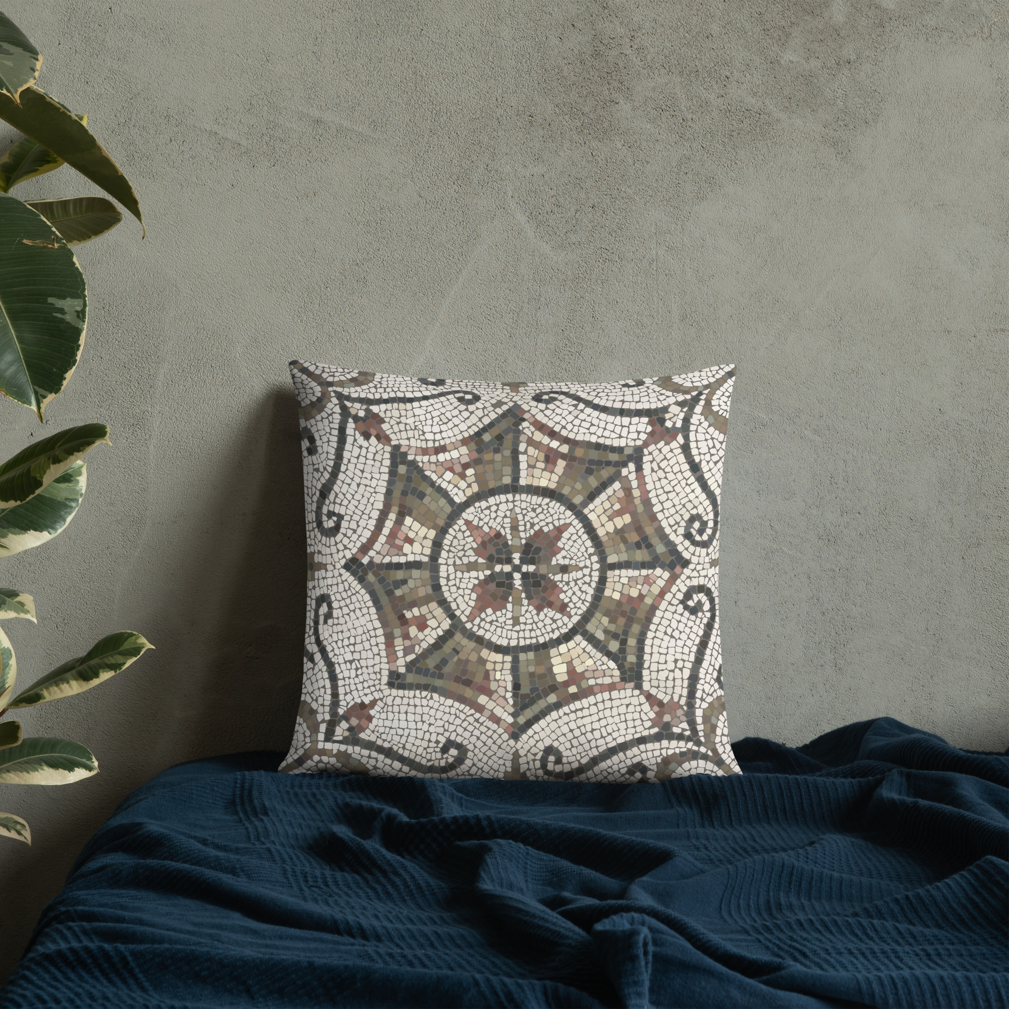 Premium Pillow // AD78 // B+W Ancient Rome Mosaic