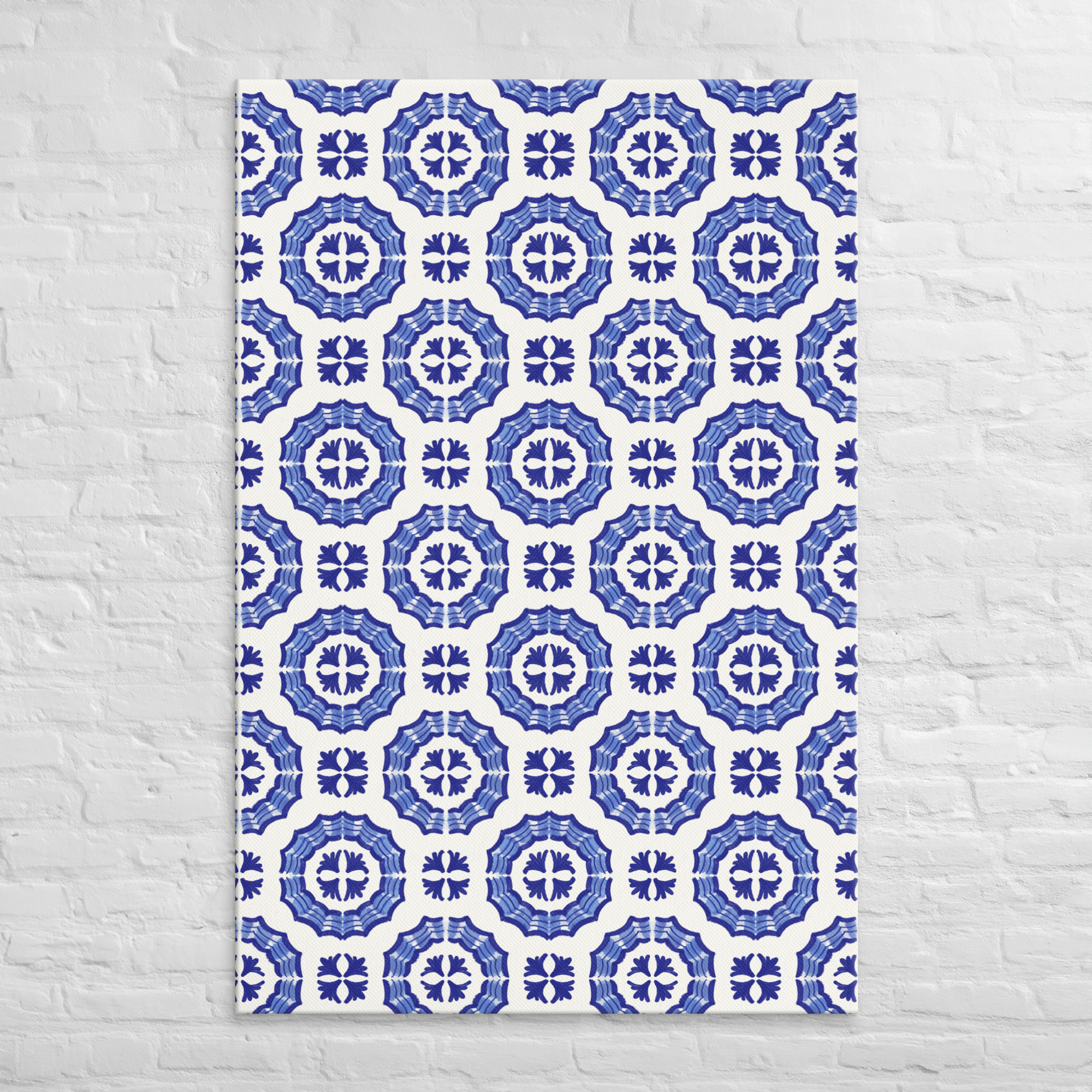 Large Panel Canvas 40″ x 60″ // Cobalt Circles Traditional Tunisian Tile Design