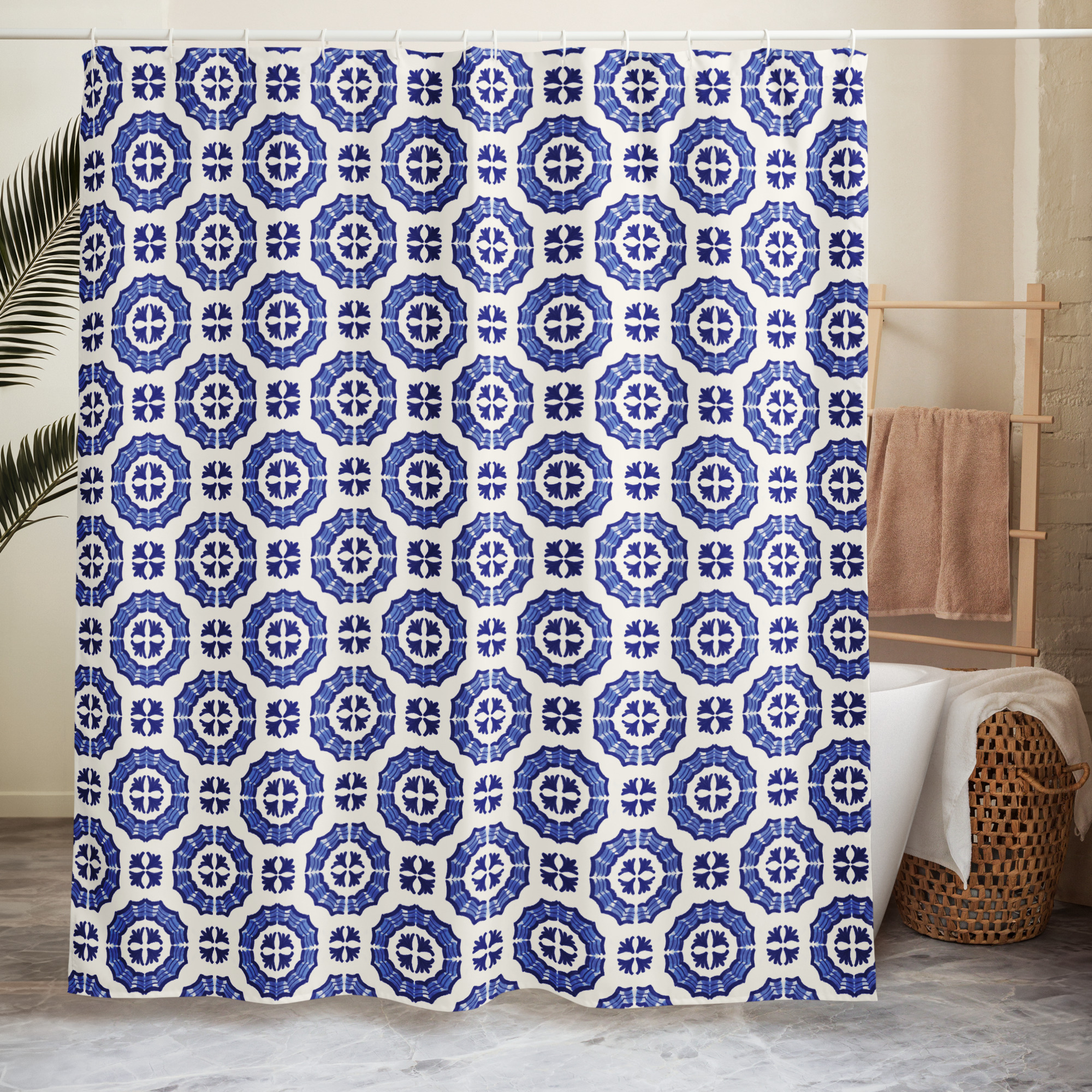 Shower Curtain // Cobalt Painted Tile Design in Circles
