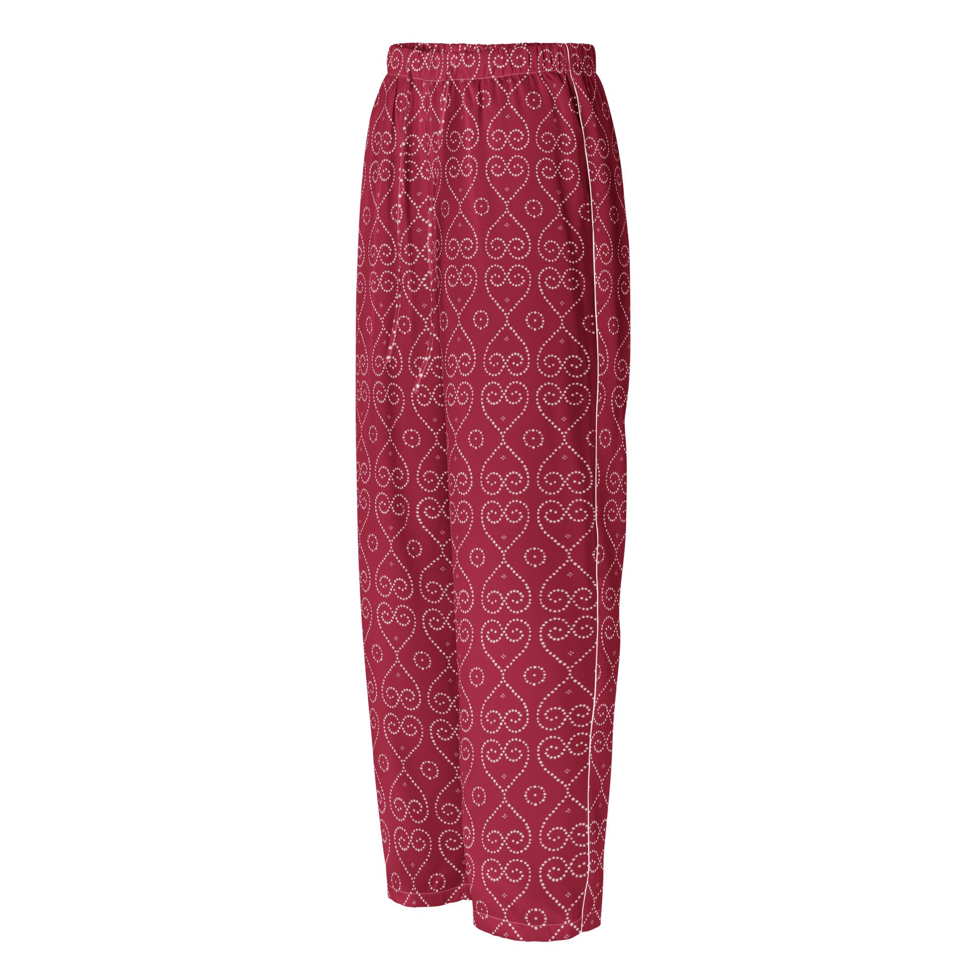 Slip into something romantic and effortlessly comfortable. These women’s pajama pants feature a rich dark red background with delicate white dotted hearts inspired by traditional Tunisian door patterns. Designed for slow mornings and cozy nights, they’re the perfect Valentine’s Day gift for a girlfriend or wife who loves to sleep in. Made from 100% silky polyester, the fabric has a smooth, luxurious feel against the skin. A relaxed fit with an adjustable drawstring waist offers comfort without sacrificing style. Whether lounging, sleeping, or savoring a lazy Valentine’s morning, these pajama pants make comfort feel beautifully intentional.